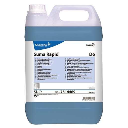 Suma Rapid D6 Folyékony ablak- és üvegtisztító szer, mely gyorsan és nyom nélkül távolítja el az ujjlenyomatokat és zsírfoltokat az üvegfelületekről.